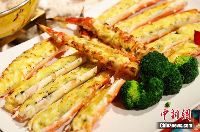 圖為(wei) 預製菜簡單加工後的成品黑鬆露芝士帝王蟹腿。供圖