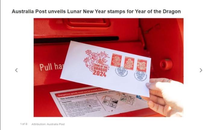 圖片澳大利亞(ya) 郵政近日推出了龍年特別版中國春節郵票。圖為(wei) 澳大利亞(ya) 第九新聞網站截圖