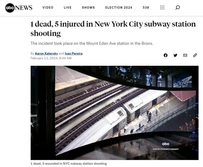 中新網2月13日電 據美國廣播公司(ABC)報道,當地時間12日下午,美國紐約布朗克斯一個(ge) 地鐵站發生槍擊事件,造成1人死亡,5人受傷(shang) 。