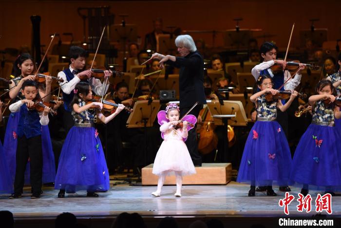 當地時間2月10日晚,美國太平洋交響樂(le) 團與(yu) 橙郡音樂(le) 與(yu) 舞蹈藝術中心的孩子們(men) 合作演奏小提琴協奏曲《梁祝》。 中新社記者 張朔 攝
