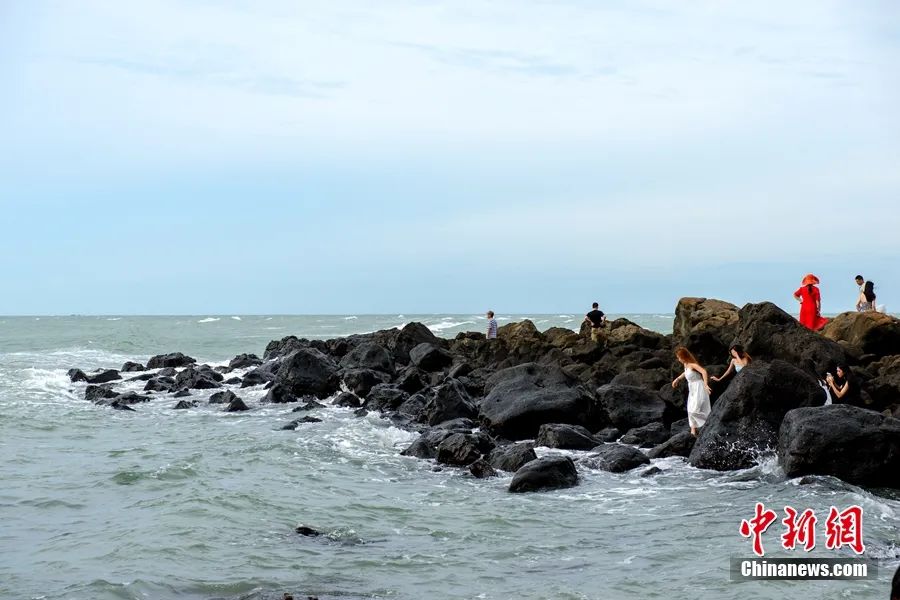 遊客在儋州峨蔓火山海岸龍門激浪景觀點遊玩。淩楠 攝