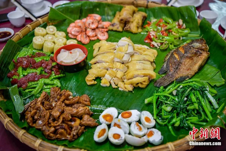 儋州石花水洞推出特色簸箕餐。駱雲(yun) 飛攝