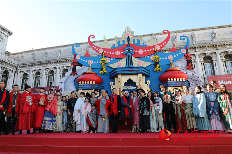 人民網威尼斯2月14日電 (記者謝亞(ya) 宏)2月13日,為(wei) 期兩(liang) 周的年度威尼斯狂歡節迎來最後一天,期間舉(ju) 行了威尼斯大學孔子學院與(yu) 蘇州絲(si) 綢博物館合作主辦的漢服巡遊活動。