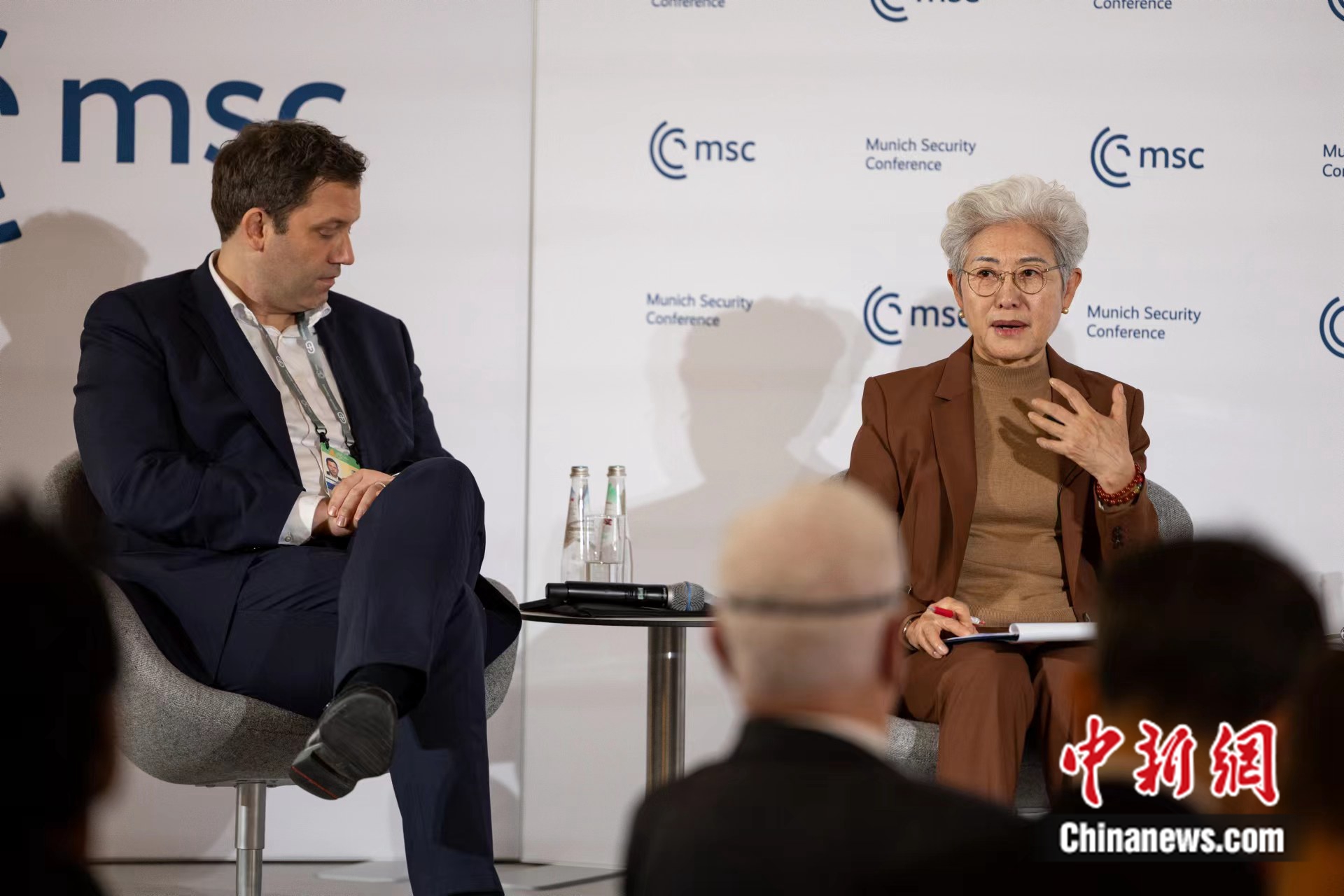 在第60屆慕尼黑安全會(hui) 議期間,中國外交部原副部長傅瑩17日參加“增強防禦:印太地區安全”論壇。圖片來源: 慕尼黑安全會(hui) 議官方攝影