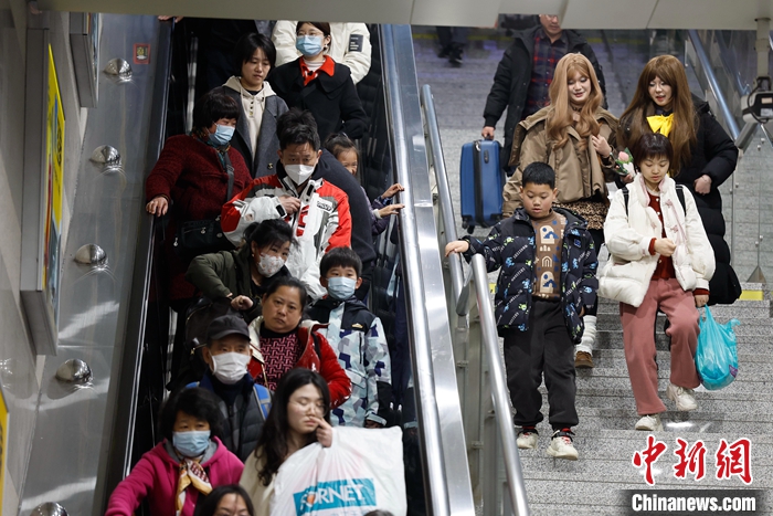 2月17日,旅客抵達上海虹橋站。當日是正月初八,是中國龍年春節假期最後一天。來自2024年綜合運輸春運工作專(zhuan) 班的最新數據顯示,2月10日至17日(農(nong) 曆正月初一至初八),中國全社會(hui) 跨區域人員流動量預計累計23.11億(yi) 人次。 中新社記者 殷立勤 攝