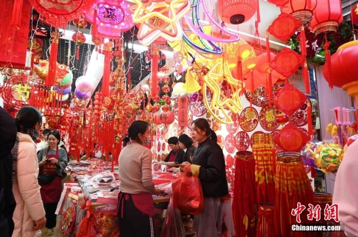 圖為(wei) 民眾(zhong) 選購過年飾品。 中新社記者 劉文華 攝