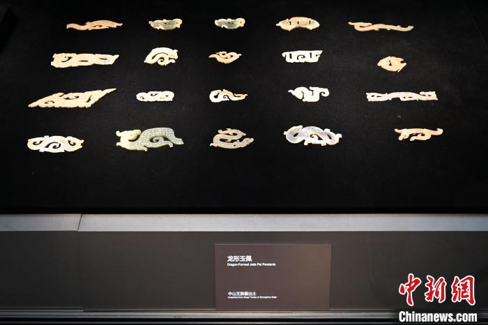 河北博物院展出的中山王厝墓出土的龍形玉佩,形態式樣各異。 中新社記者 翟羽佳 攝