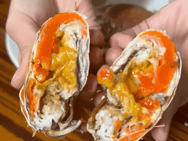 科學喂養(yang) 。采用沙丁魚、大豆、玉米等營養(yang) 含量較高的食物喂養(yang) 大閘蟹,所以,這裏每一隻大閘蟹都是“青殼、白肚、金爪、黃毛”,不僅(jin) 個(ge) 頭大,而且膏黃飽滿、肉質鮮美,沒有泥腥味和湖腥味。