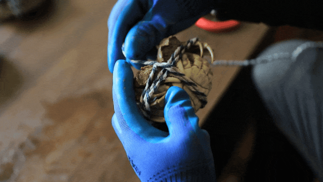 村民正在綁大閘蟹。臨(lin) 猗縣委宣傳(chuan) 部提供