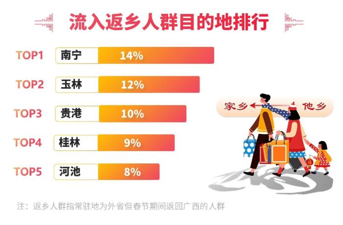春節期間廣西流入返鄉(xiang) 人群目的地排行。申蓓 供圖