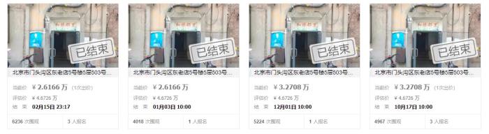 據阿裏資產(chan) ·司法平台顯示的信息,北京市門頭溝區東(dong) 老店5號樓5層503號(2%份額)在幾天前結束了拍賣,最終以26166.6元的價(jia) 格被拍下。