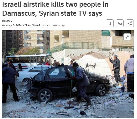 中新網2月21日電 據路透社消息,當地時間21日,以色列空襲了敘利亞(ya) 首都大馬士革,造成2名平民死亡,另有多人受傷(shang) 。