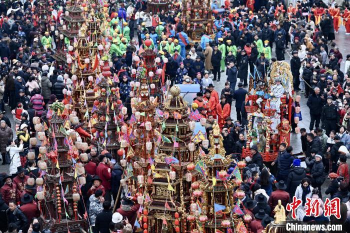 在巡遊途中,童氏後人按規定擺上供品供請祖先,沿路隨處有村民無償(chang) 供應水果、茶點、湯包和麥餃筒給遊人享用。遊行隊伍還會(hui) 進行舞龍舞獅、秧歌舞、“碾後街”等民俗表演,村民、遊客擠滿了街巷,熱鬧的鼓樂(le) 和喝彩響徹雲(yun) 霄。到了晚上,家家戶戶張燈結彩,鼓亭抬閣上亮起盞盞花燈,綿延數裏流光溢彩,伴隨著絢爛煙花將氣氛推向高潮。