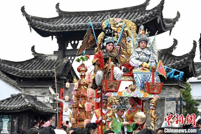 中新網寧波2月23日電 (方堃 蔣攀 駱佳明 葛鵬超)2月23日正值農(nong) 曆正月十四,浙江省寧波市寧海縣前童鎮鼓亭館廣場上,人聲鼎沸,熱鬧非凡,一場延續百年的民俗活動“前童元宵行會(hui) ”在這裏舉(ju) 行。