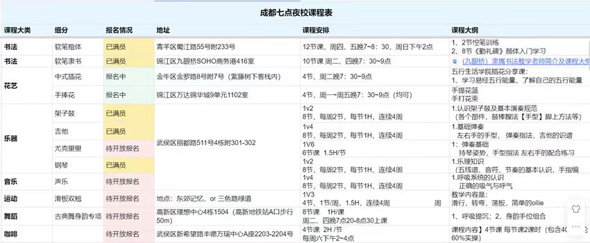 五花八門的副業(ye) 她都嚐試過,目前比較穩定、收入占比最大的是去年11月開始做的夜校。那段時間,年輕人上夜校的話題火爆,她發現成都還沒有,於(yu) 是第一個(ge) 在成都建起夜校社群,以組團的人數優(you) 勢去找商家談低價(jia) 課,類似於(yu) 興(xing) 趣班的拚多多,目前社區差不多有5000人。