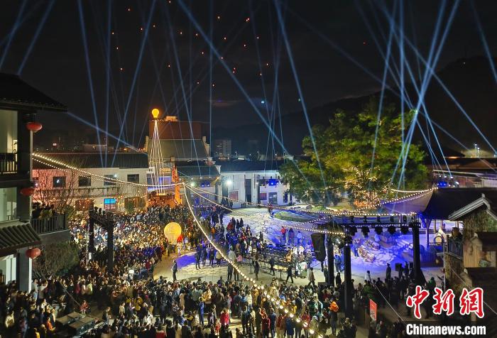 賴聲川曆時多年在家鄉(xiang) 江西會(hui) 昌打造的會(hui) 昌戲劇小鎮開幕,燈光秀現場人氣爆棚。(受訪者供圖)