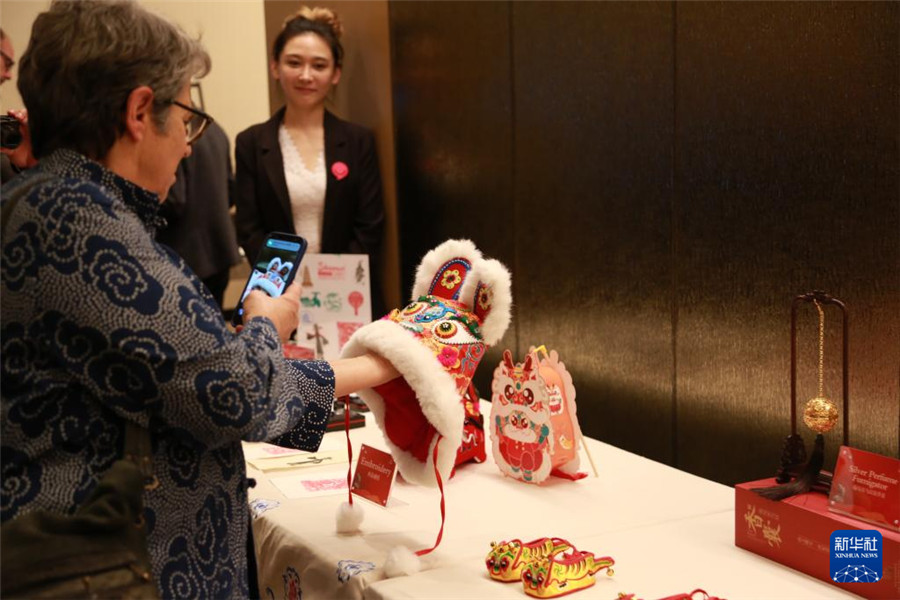 2月27日,在美國紐約,一名參會(hui) 者在陝西省文化和旅遊廳與(yu) 中國駐紐約旅遊辦事處舉(ju) 辦的陝西文化旅遊推介會(hui) 上拍攝陝西民俗產(chan) 品。新華社記者 劉亞(ya) 南 攝