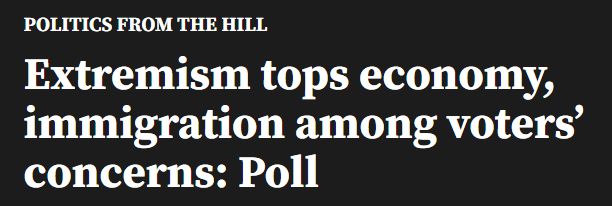 調查發現,21%的受訪者表示“政治極端主義(yi) 或者民主所受到的威脅”是他們(men) 最為(wei) 擔心的問題,其次才是經濟問題和移民問題,後兩(liang) 者占比分別為(wei) 19%和18%。