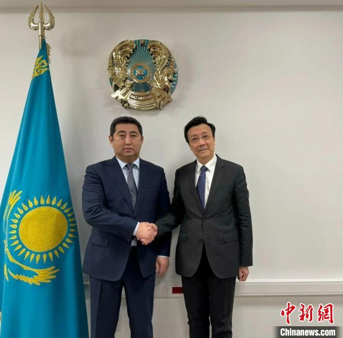 當地時間3月4日,大使張霄(右一)會(hui) 見哈農(nong) 業(ye) 部長薩帕羅夫。中國駐哈薩克斯坦大使館供圖