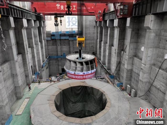 “轉輪是水輪發電機組產(chan) 生電能的核心部件,被譽為(wei) 水輪發電機組的‘心髒’。本次吊裝的轉輪由上冠、下環及15個(ge) 葉片組裝焊接而成,最大直徑6.37米、高3.29米,吊裝總重約114噸,共曆時52分鍾吊裝完成。”黃河公司羊曲籌建處主任楊雲(yun) 峰說。