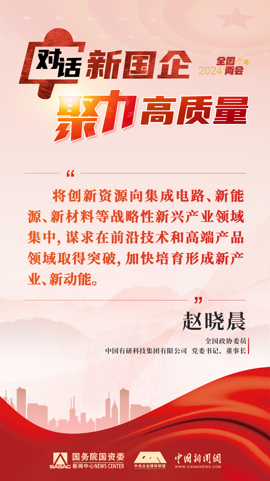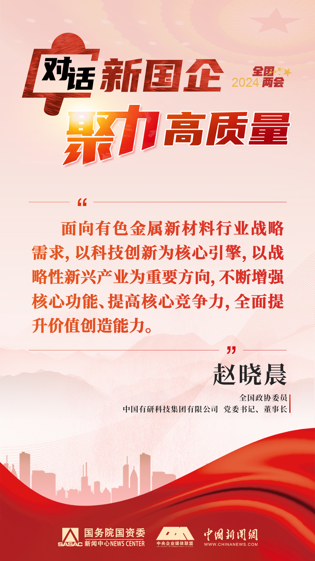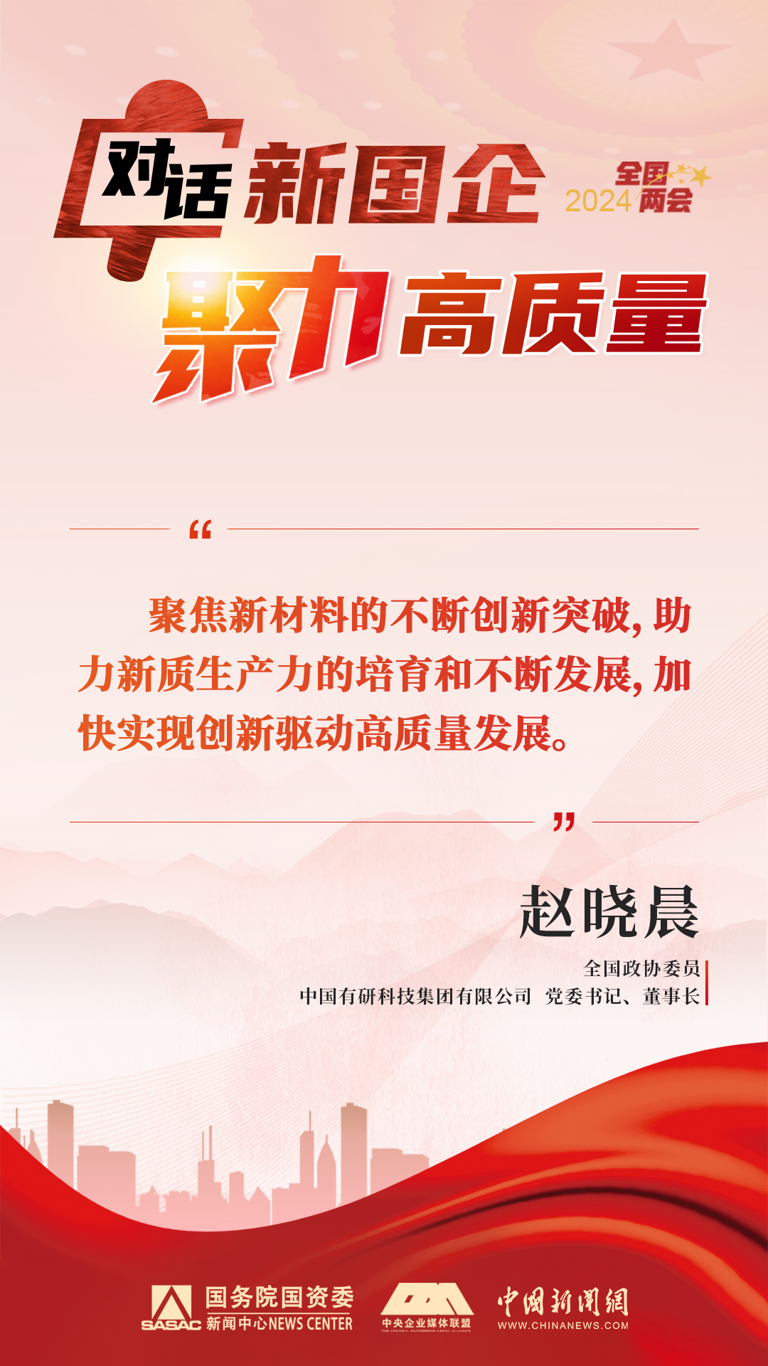 中新網北京3月6日電(記者 張尼) “我理解,科技創新是發展新質生產(chan) 力的核心要素;新材料突破是戰新產(chan) 業(ye) 、未來產(chan) 業(ye) ,是新質生產(chan) 力孕育和發展的一個(ge) 重要前提和基礎。” 全國政協委員,中國有研科技集團有限公司黨(dang) 委書(shu) 記、董事長趙曉晨在“對話新國企·聚力高質量”係列融媒體(ti) 訪談中表示,要以新興(xing) 產(chan) 業(ye) 發展引領新質生產(chan) 力形成,培育企業(ye) 發展新動能。
