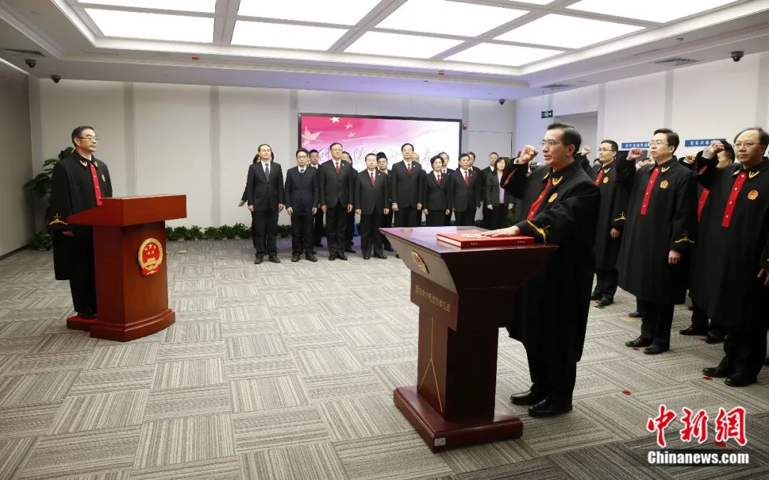 2019年1月1日,中國最高人民法院知識產(chan) 權法庭在北京揭牌成立,最高法知識產(chan) 權法庭全體(ti) 法官進行憲法宣誓。李慧思 攝