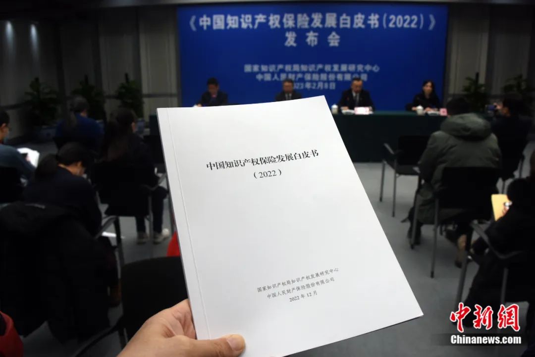 2023年2月8日,中國國家知識產(chan) 權局知識產(chan) 權發展研究中心、中國人民財產(chan) 保險股份有限公司在北京正式發布雙方合作完成的業(ye) 內(nei) 首份《中國知識產(chan) 權保險發展白皮書(shu) (2022)》。孫自法 攝