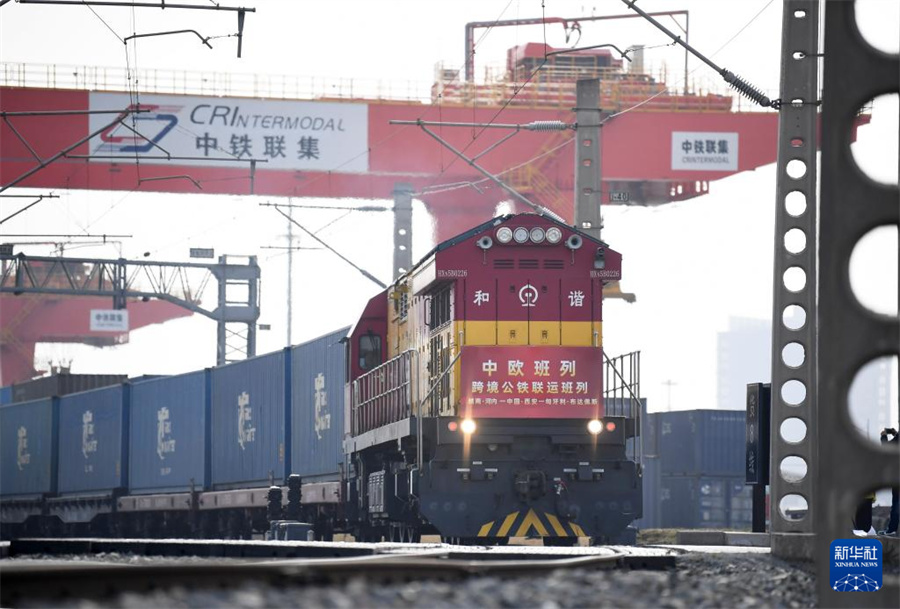 3月7日,中歐班列(越南·河內(nei) ——中國·西安——匈牙利·布達佩斯)跨境公鐵聯運班列從(cong) 西安國際港站駛出。新華社記者 李一博 攝