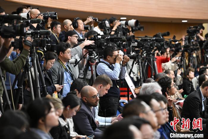 3月6日,十四屆全國人大二次會(hui) 議在北京舉(ju) 行記者會(hui) ,國家發展和改革委員會(hui) 主任鄭柵潔、財政部部長藍佛安、商務部部長王文濤、中國人民銀行行長潘功勝、中國證券監督管理委員會(hui) 主席吳清就發展改革、財政預算、商務、金融證券等相關(guan) 問題回答中外記者提問。圖為(wei) 中外記者在現場采訪。 中新社記者 何蓬磊 攝