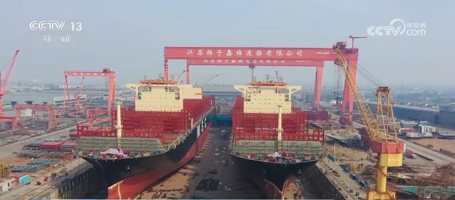 春節過後,在全國最大的民營造船基地、國家級船舶出口基地泰州,各家船企一派繁忙景象。這家船塢內(nei) ,14艘遠洋運輸船舶正在同時建造。