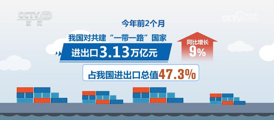 海關(guan) 統計數據顯示,今年前2個(ge) 月,我國對共建“一帶一路”國家進出口3.13萬(wan) 億(yi) 元,同比增長9%,占我國進出口總值的47.3%。其中,對東(dong) 盟進出口9932.4億(yi) 元,增長8.1%;對中亞(ya) 五國進出口950.9億(yi) 元,增長26%。同期,對RCEP其他成員國進出口1.94萬(wan) 億(yi) 元,增長3.5%;對拉美進出口5874.8億(yi) 元,增長17.3%;對非洲進出口3389.4億(yi) 元,增長17.3%。
