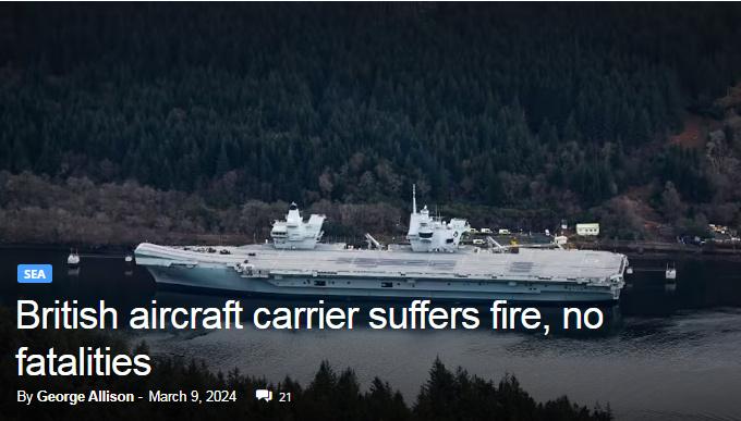 報道稱,“伊麗(li) 莎白女王”號航母原計劃前往蘇格蘭(lan) 羅賽斯“對其右舷螺旋槳軸聯軸器”進行維修,發生火災時停靠在格倫(lun) 馬蘭(lan) 。