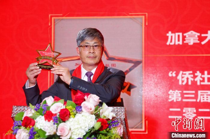 當地時間3月8日晚,加拿大福建社團聯合總會(hui) 在多倫(lun) 多舉(ju) 辦2024甲辰龍年迎春團拜會(hui) 。圖為(wei) 該會(hui) 主席林慶清在致辭時展示2023年11月第三屆世界閩籍華僑(qiao) 華人社團聯誼大會(hui) 向加拿大福建社團聯合總會(hui) 頒授的“僑(qiao) 社之星”獎杯。 中新網記者 餘(yu) 瑞冬 攝