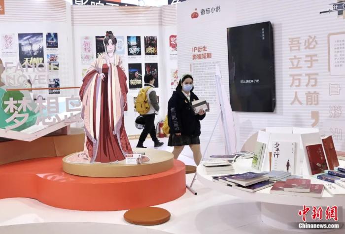 2023年3月,北京,觀眾(zhong) 在第六屆中國“網絡文學 ”大會(hui) 網文企業(ye) 特色展區參觀。易海菲 攝