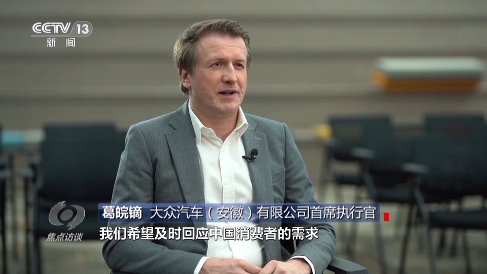 大眾(zhong) 汽車(安徽)有限公司首席執行官 葛皖鏑:借助於(yu) 這個(ge) 研發中心,我們(men) 希望及時回應中國消費者的需求,這意味著一方麵,我們(men) 要打造大眾(zhong) 汽車集團首個(ge) 專(zhuan) 屬中國市場的電動汽車平台;另外一方麵,我們(men) 希望將其開發周期縮短約30%,這樣才能夠跟上中國市場的步伐。