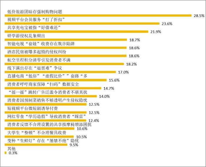 中新網3月14日電(中新財經記者 謝藝觀)3月14日,中國消費者協會(hui) 對外發布2024年“激發消費活力”消費維權年主題調查報告,調查結果顯示,低價(jia) 旅遊團暗存強製購物、視頻平台會(hui) 員服務“打了折扣”、共享充電寶“好借難還”引共鳴。
