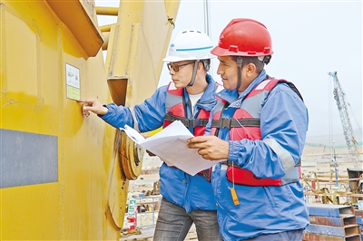 項目部技術專(zhuan) 家專(zhuan) 門研發了海上高智能化超大型自移動式打樁平台等大型專(zhuan) 業(ye) 設備,不僅(jin) 實現了施工預期目標,保護了施工海域水質和生物,還實現了沉樁作業(ye) 全季節、全時段施工,大大提高了施工效率。