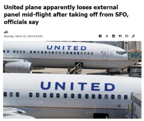 3月,美聯航波音客機又出現了包括引擎起火、輪胎脫落、滑出跑道在內(nei) 的多起事故。