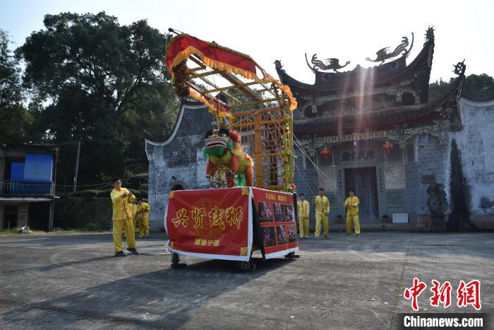圖為(wei) “興(xing) 賢少年線獅隊”2024年春節期間走進寧德市蕉城區洋中鎮芹嶼村表演霍童線獅。褚子強 攝