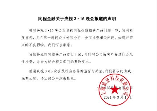 同程金融App被曝光“禮品卡套路”後,同程金融回應稱,公司高度重視,並在第一時間成立專(zhuan) 項小組,全麵排查相關(guan) 問題;將立刻對相關(guan) 產(chan) 品進行下線,同時對公司所有產(chan) 品進行合規性檢查,並全力配合相關(guan) 部門的整改要求。