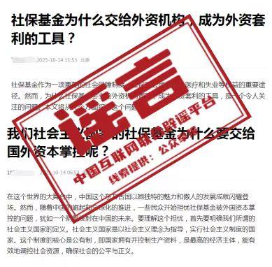 中新網3月18日電 據“互聯網聯合辟謠平台”微信公眾(zhong) 號消息,近段時間以來,有少數網絡自媒體(ti) 發布視頻稱,我國社會(hui) 保險基金“幾乎全部交給外資機構管理”,且被用於(yu) “買(mai) 賣A股”,質疑社保基金成為(wei) “外資套利的工具”。經中國互聯網聯合辟謠平台向有關(guan) 主管部門核實查證,前述言論均為(wei) 不實信息。