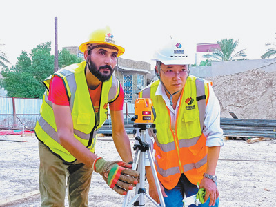 中伊兩(liang) 國技術人員共同開展工程測繪。