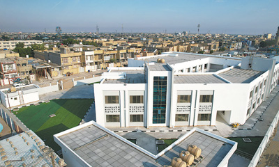 伊拉克政府決(jue) 定到2030年新建8000所學校,其中首批規劃的1000所示範學校中,中國電建承建了679所。圖為(wei) 已經完工的伊拉克瓦西特省第20號學校,學校為(wei) 合院式全功能建築。
