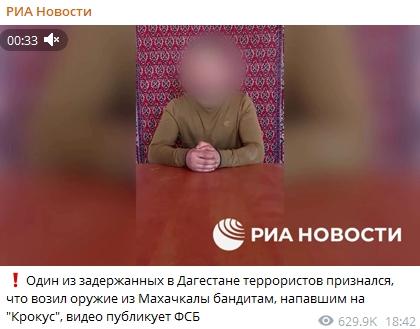 “我給那些襲擊了莫斯科‘克羅庫斯城’音樂(le) 廳的人帶去了武器。武器是我從(cong) 馬哈奇卡拉帶到梅季希的。”其中一人表示。