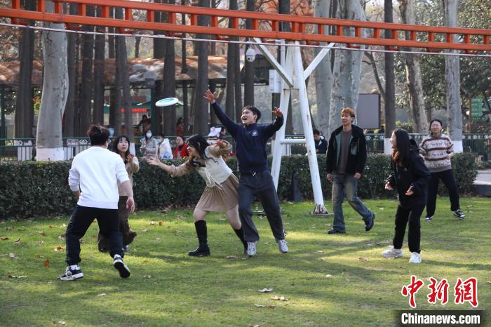 1月底,年輕人在武漢市中山公園玩飛盤。 張暢 攝