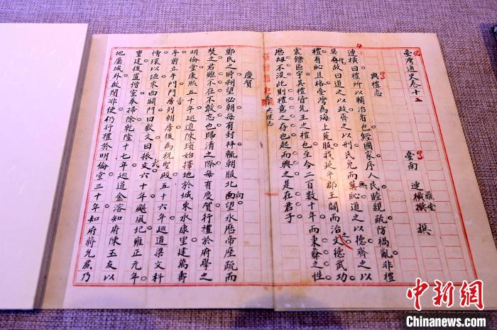 圖為(wei) 連橫《台灣通史》手稿殘卷影印本。 中新社記者 張金川 攝