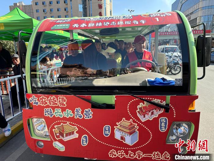 3月25日,遊客乘坐的天水麻辣燙誌願服務車。 戴文昌 攝