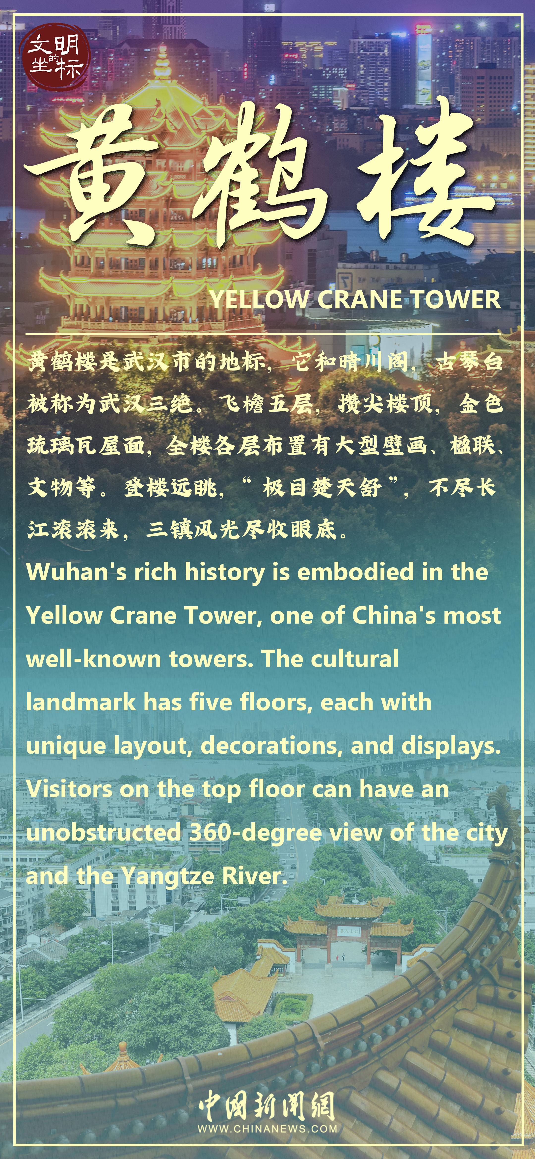 “昔人已乘黃鶴去,此地空餘(yu) 黃鶴樓。黃鶴一去不複返,白雲(yun) 千載空悠悠。”號稱“天下江山第一樓”的武漢黃鶴樓,在曆史上曾是無數文人揮灑墨香的靈感源泉。與(yu) 其相關(guan) 的詩詞約有1500首,屈原行吟於(yu) 此、嶽飛填詞於(yu) 此、李白擲筆於(yu) 此……豐(feng) 厚的文化內(nei) 涵,令黃鶴樓成為(wei) “凝固的詩”“立體(ti) 的畫”。《夜上黃鶴樓》項目開啟了千年名樓沉浸式夜遊新體(ti) 驗,悠揚的旋律、炫酷的光影、古風古韻的歌舞,讓無數遊客流連忘返。春光明媚,櫻花盛放,來武漢觀賞黃鶴樓的“櫻花版”新皮膚,感受千年名樓的非凡氣韻和文化精神。