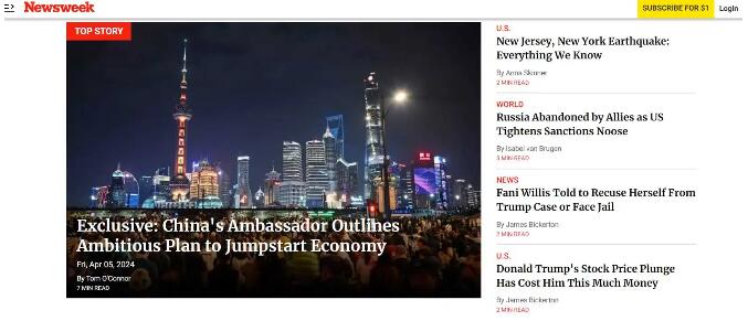 據中國駐美國大使館網站消息,4月5日,中國駐美國大使謝鋒就“新質生產(chan) 力”和中國經濟形勢接受美國《新聞周刊》(Newsweek)高級外交政策記者湯姆·奧康納專(zhuan) 訪,訪談內(nei) 容當日在該周刊網站刊登。