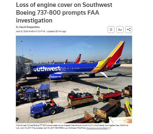 美國西南航空公司表示,維修團隊正在檢查出現事故的飛機。美國聯邦航空管理局稱,將對此事進行調查。
